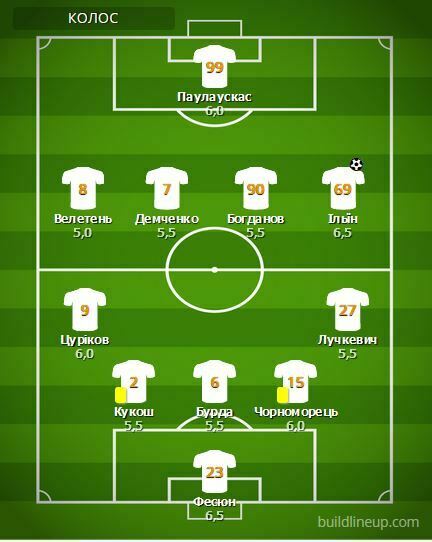 «Колос»: Фесюн, Цуриков, Черноморец, Бурда, Лучкевич, Богданов (Милько, 57), Кукош, Демченко (Ориховский, 83), Велетень (Салабай, 46), Ильин (Рангел, 75), Паулаускас (Безбородько, 74)