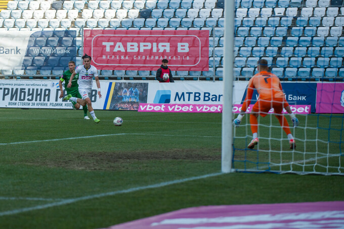 На 17-й минуте Мякушко на левом фланге обыграл защитника и прострелил на дальнюю стойку ворот, партнеру совсем немного не хватило, чтобы переправить мяч в ворота.