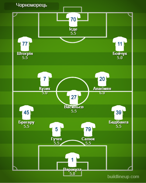 Замены «Чорноморець»: Присяжнюк - 5.0, Зе Гомес, Альваренга - оба б/о.