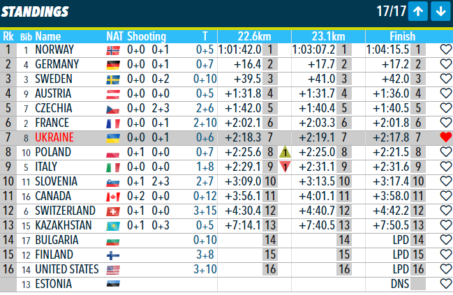- 1. Норвегия – 1:04:15.5 (0+5)