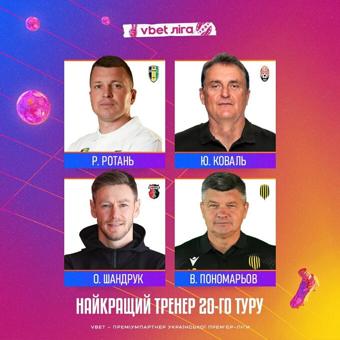 Украинская Премьер-лига объявила о старте голосования за победителя в номинациях «Лучший игрок 20 тура» и «Лучший тренер 20 тура».
