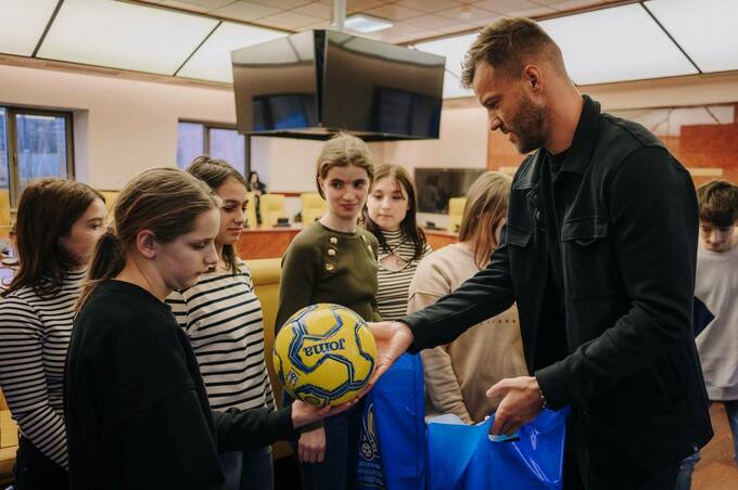 По инициативе Фонда Елены Зеленской для поддержки семейных форм воспитания, ребята посетили столичный Дом футбола и встретились с капитаном сборной Украины по футболу Андреем Ярмоленко и главным тренером команды Сергеем Ребровым.