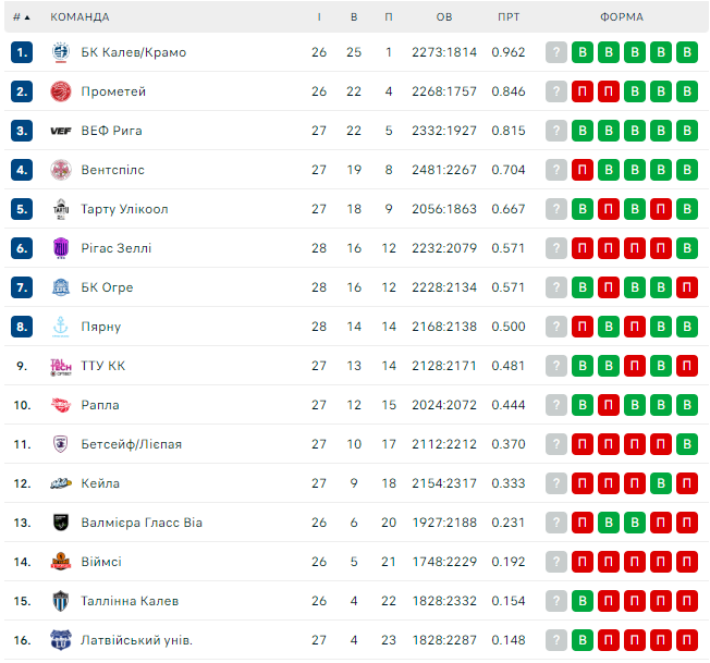 Украинскому баскетбольному клубу «Прометей» засчитали техническое поражение 0:20 в поединке Латвийско-эстонской баскетбольной лиги против «Тарту».