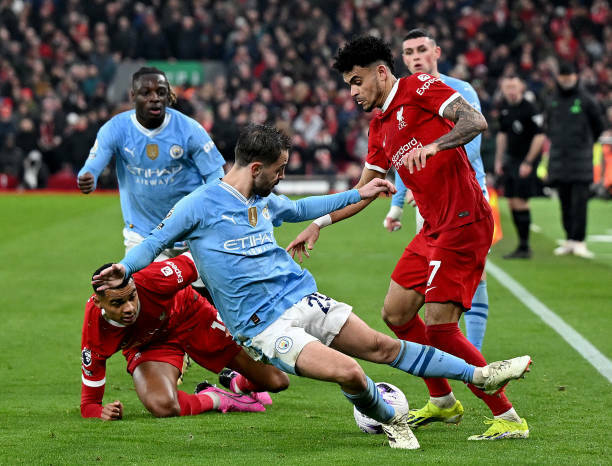 Игра началась сразу же с опасных моментов, которые были у де Брюйне, но забить у бельгийца не получалось. В ответ активизировался Луис Диас, который стал, пожалуй, лучшим игроком матча, постоянно делая дураков из манчестерской защиты. Если бы Дарвин Нуньес избегал офсайдов, то Диас точно записал бы на свой счет голевое действие в одном из множества эпизодов.