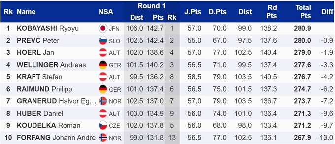 Победу одержал японец Рёю Кобаяси, который опередил словенца Петера Превца и австрийца Яна Хёрля.