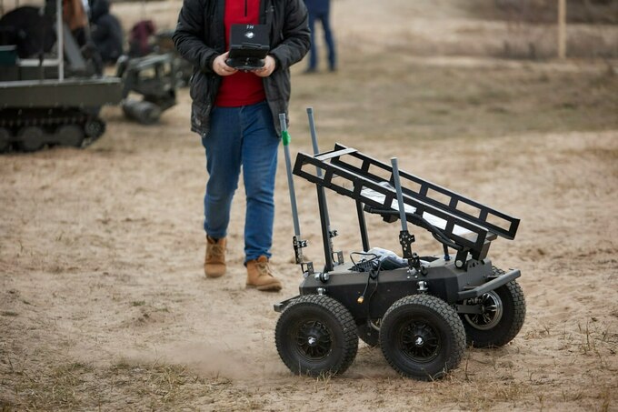 Испытания проходили платформы-камикадзе, турели, платформы, которые уничтожают позиции и технику россиян, проходят, разминируют, эвакуируют раненых и подвозят боеприпасы на позиции.