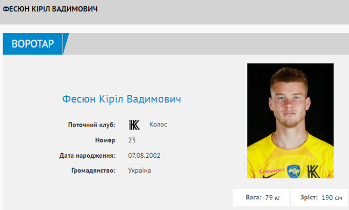 На сайте УПЛ Кирилл Фесюн заявлен как игрок «Колоса».