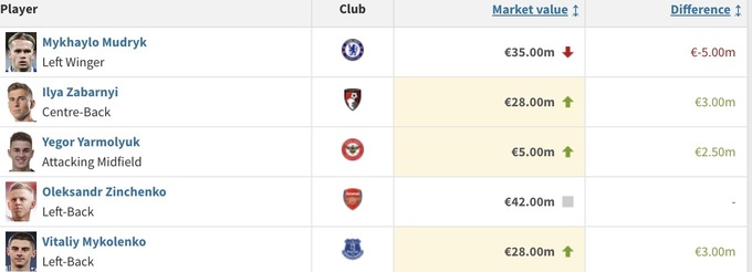 Поднялись в цене сразу три футболиста из Украины. Защитник «Борнмута» Илья Забарный, забивший вчера свой первый гол в АПЛ, подорожал на 3 миллиона евро и теперь стоит 28 млн, на столько же вырос в цене и фулбек «Эвертона» Виталий Миколенко, его стоимость тоже составляет 28 млн.