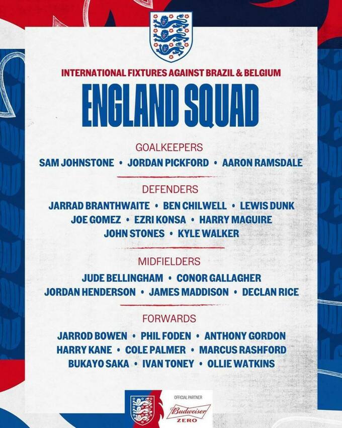 Тренерский штаб сборной Англии во главе с Гаретом Саутгейтом определился со списком игроков, которые вызваны на мартовские товарищеские матчи против Бразилии и Бельгии (23 и 26 марта соответственно).