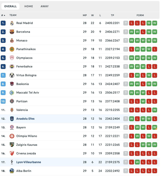 Состоялся первый игровой день двадцать девятого раунда Евролиги