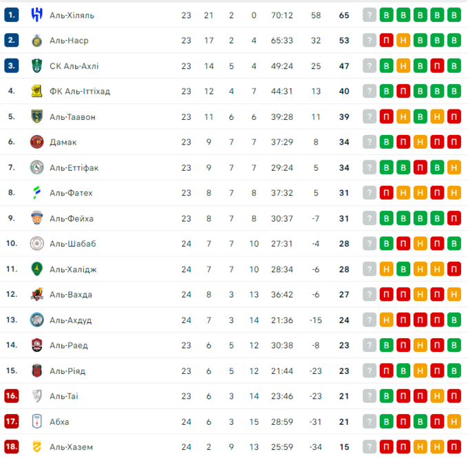 14 марта в чемпионате Саудовской Аравии состоялись матчи 24-го тура.