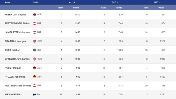 Однако травмой Риибера проблемы сборной Норвегии не ограничились. Не лучшим образом в субботней гонке выглядел Йорген Гробак. В воскресном личном турнире он показал 11-й результат на трамплине, после чего откровенно слабо начал гонку и принял решение сойти с дистанции. Официального объяснения пока что не было, но, похоже, Гробак приехал в Тронхейм с болезнью. Как итог – Йорген без боя проиграл Йоханнесу Лампартеру борьбу за третье место в общем зачете, хотя перед стартом их разделяло всего 6 очков. В итоге в воскресном личном турнире в топ-10 попал только один норвежец – Йенс Лурос Офтебро, который финишировал пятым.