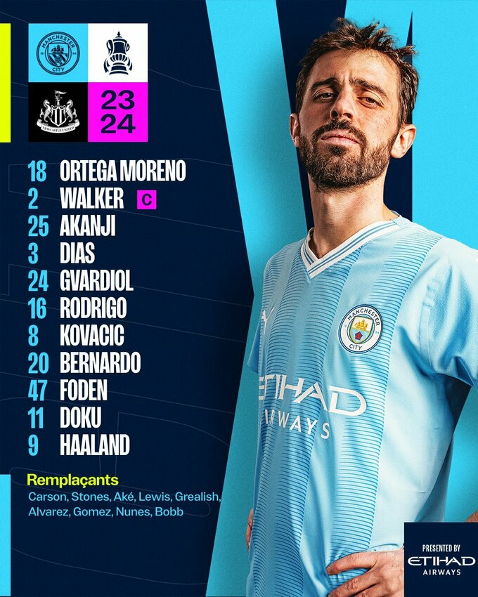 Манчестер Сити: Ортега, Уокер, Рубен Диаш, Аканджи, Гвардиол, Ковачич, Бернарду Силва, Родри, Фоден, Доку, Холанд.
