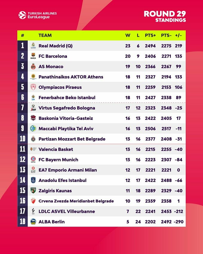 Благодаря этой победе «Реал» стал первым клубом в текущем сезоне Евролиги, гарантировавшим себе участие в плей-офф. Мадридский клуб, который выиграл 23 матча и проиграл всего шесть, уже точно не опустится ниже шестого места.