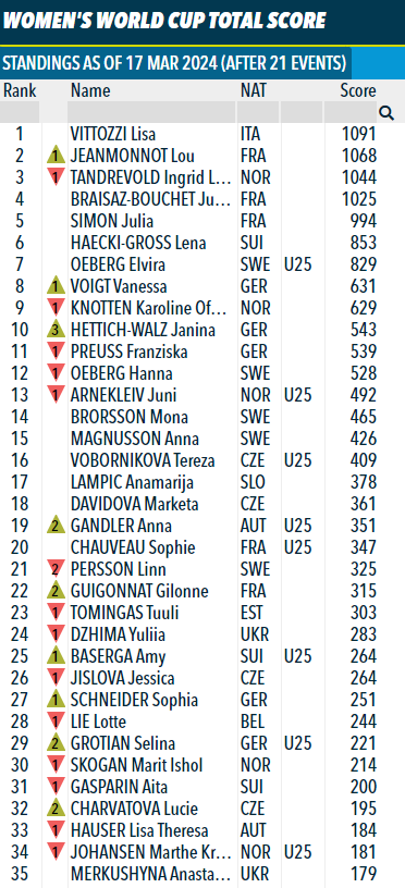 В топ-3 общего зачета также вошли: Лу Жанмонно (Франция) – 1068 очков, Ингрид Тандреволд (Норвегия) – 1044.