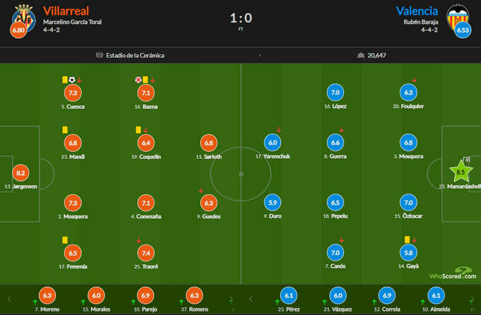 Оценки WhoScored за матч Вильярреал – Валенсия – 1:0
