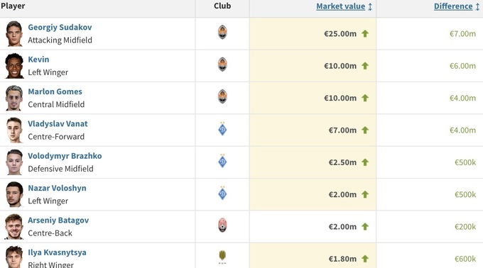 - Владислав Ванат (Динамо) +4 млн = 7 млн евро