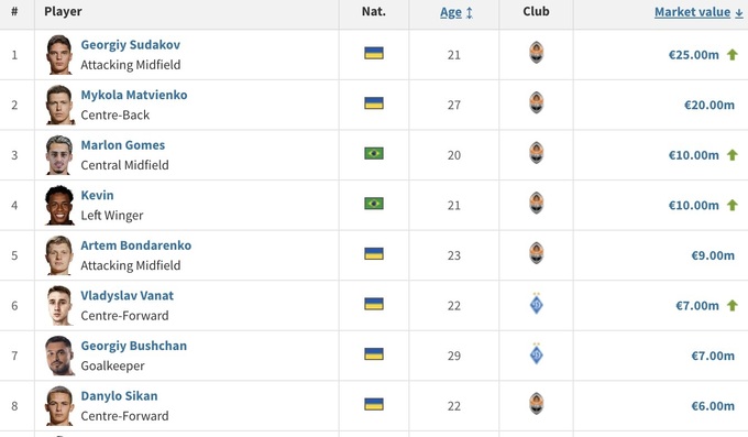 Наибольшую трансферную стоимость среди всех игроков УПЛ имеет полузащитник «Шахтера» Георгий Судаков, который подорожал на семь миллионов евро и теперь оценивается в 25 миллионов. Судаков опередил бывшего лидера рейтинга Николая Матвиенко, стоимость которого оценивается в 20 млн.