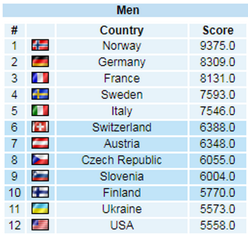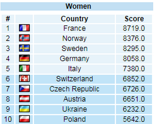 Кубок наций с преимуществом более чем в тысячу очков выиграли норвежцы. Максимальную квоту на следующий сезон получили сборные Германии, Франции, Швеции и Италии.