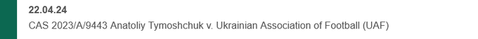 Тимощук против УАФ. CAS назначил дату начала рассмотрения дела