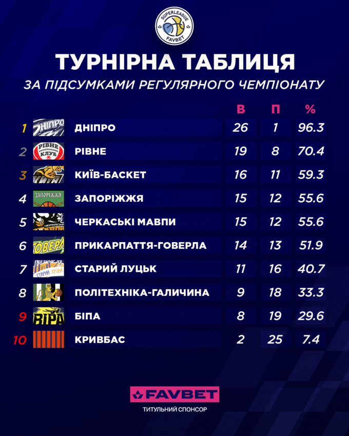 Днепр обыграл Киев-Баскет и выиграл регулярный чемпионат Суперлиги