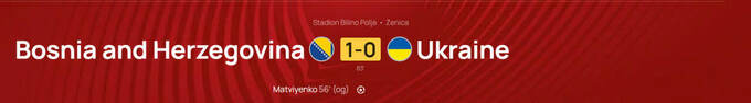 Босния и Герцеговина вышла вперед в поединке против Украины на 56-й минуте