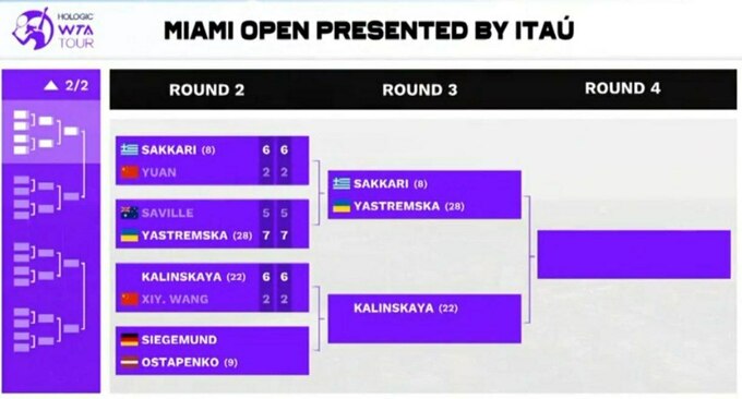 В 3-м раунде престижных соревнований в Майами Ястремская сыграет против 8-й сеяной Марии Саккари.