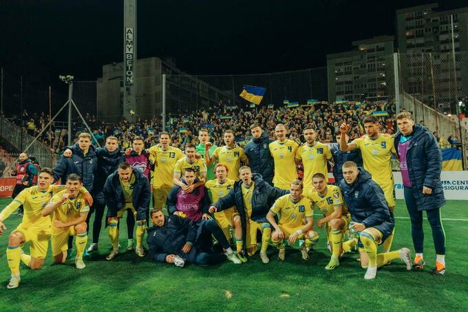 После завершения встречи пресс-служба Украинской ассоциации футбола поделилась командным фото футболистов сборной Украины, празднующих победу в сверхважном матче.