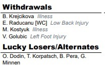 В основной сетке турнира Костюк заменит лаки-лузер Осеан Доден из Франции (№84 WTA).
