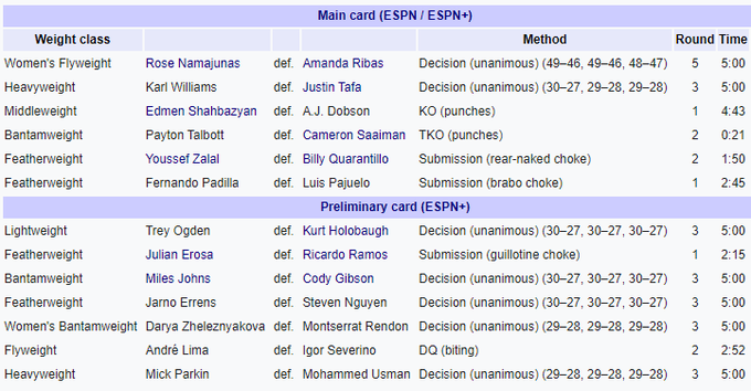 В главном бою встретились: Аманда Рибас (Бразилия, 13–4) – Роуз Намаюнас (США, 11–6)