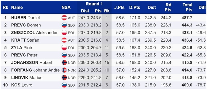 Компанию Хуберу на подиуме сегодня составили хозяин соревнований, словенец Домен Превц и поляк Александер Знищол.