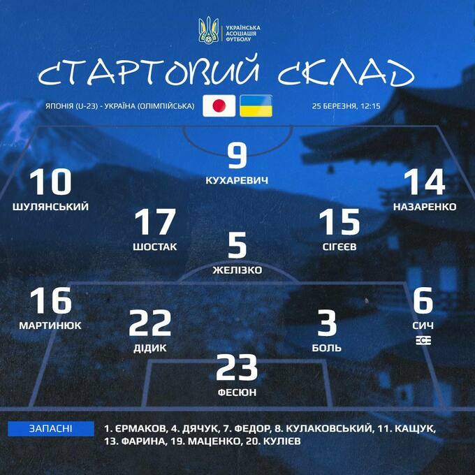25 марта олимпийская сборная Украины U-23 проведет товарищеский матч против команды Японии U-23.