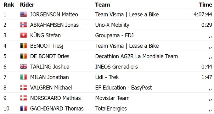 Американский велогонщик команды «Visma Lease a Bike» Маттео Йоргенсон стал победителем престижной бельгийской однодневки Мирового тура Дварс доор Фландерен. Он на 29 секунд опередил норвежца Йонаса Абрамсена из «Uno-X» и швейцарца Штефана Кюнга из «Groupama FDJ».