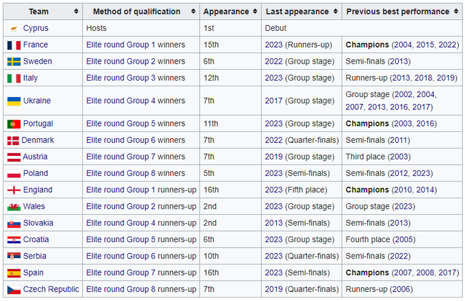 - Победители групп: Франция, Швеция, Италия, Украина, Португалия, Дания, Австрия, Польша