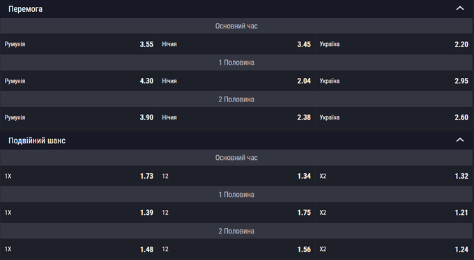 Ничья расценивается в 3.45. Успех румынской командой котируется по 3.55. На то, что обе сборные забьют в этом матче, коэффициент составляет 2.03.