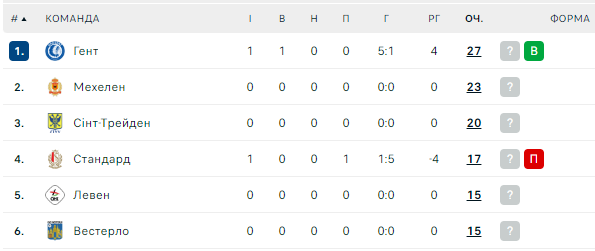 В первой игре Гент на домашней арене разгромил Стандард, отгрузив соперникам 5 мячей (5:1).