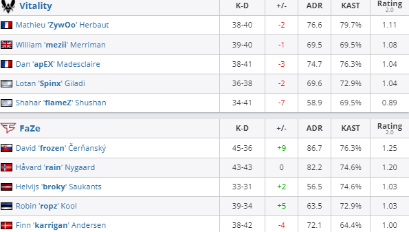 Team Vitality – FaZe Clan – 1:2 (7:13, 13:5, 8:13)