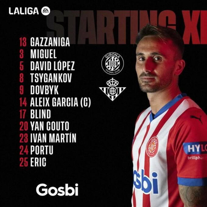Состав «Жироны»: Гассанига, Мигель, Эрик Гарсия, Давид Лопес, Блинд, Ян Коуту, Иван Мартин, Алеш Гарсия, Порту, Цыганков, Довбик