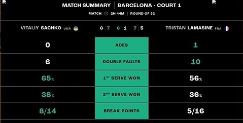 Виталий Сачко (Украина, 5) – Тристан Ламазин (Франция) – 6:7(6), 6:1, 7:5