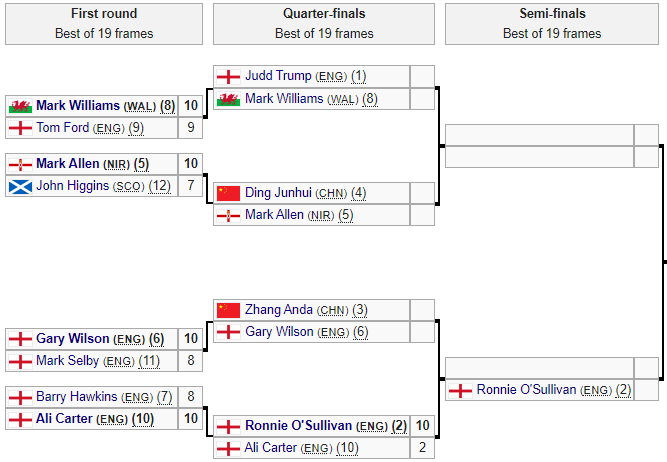 - Джадд Трамп (Англия) – Марк Уильямс (Уэльс)