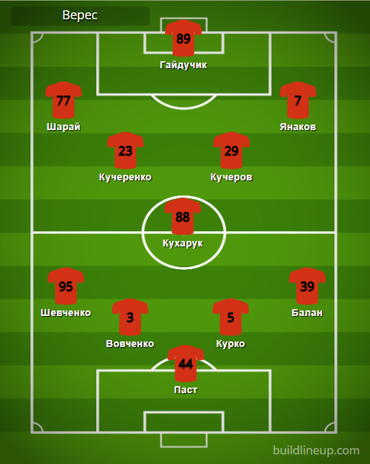 «Верес»: Паст (Когут, 83) – Шевченко, Вовченко, Курко, Балан – Кучеренко, Кухарук, Кучеров (Яго, 70) – Шарай (Шастал, 57), Гайдучик (Морозко, 70), Янаков (Дахновский, 58).