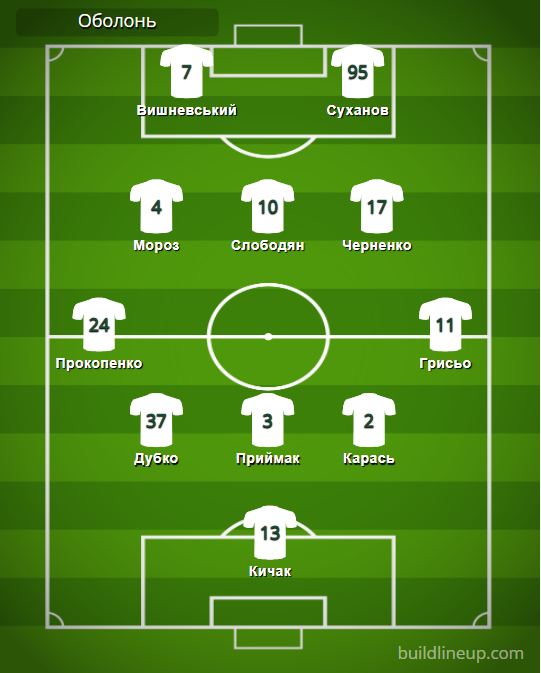 «Оболонь»: Кичак – Прокопенко, Дубко, Приймак, Карась (Осман, 46), Грисьо – Мороз (Косовский, 58), Слободян, Черненко – Вишневский (Груша, 46), Краснопир (Тарануха, 70).