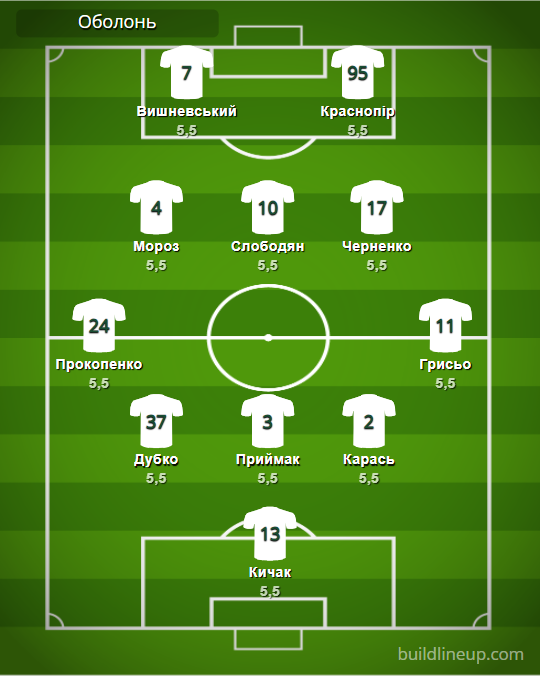 «Оболонь»: Кичак – Прокопенко, Дубко, Приймак, Карась (Осман, 46), Грисьо – Мороз (Косовский, 58), Слободян, Черненко – Вишневский (Груша, 46), Краснопир (Тарануха, 70).