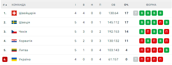 Сборная Украины в дивизионе Trophy проиграла все 4 матча. В ноябре 2023 года украинцы уступили Литве (14:32) и Хорватии (5:41), а 23 марта проиграли Чехии (18:48).