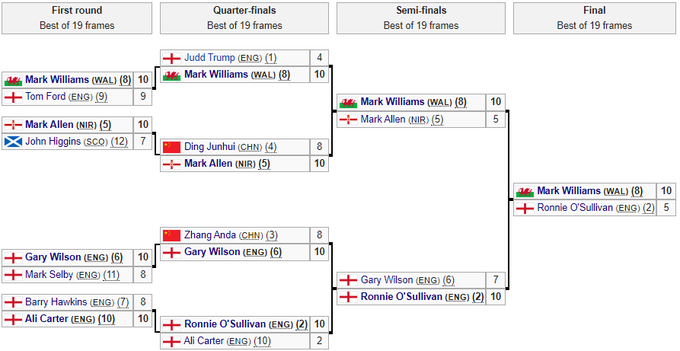 Марк Уильямс (Уэльс) – Ронни О'Салливан (Англия) – 10:5