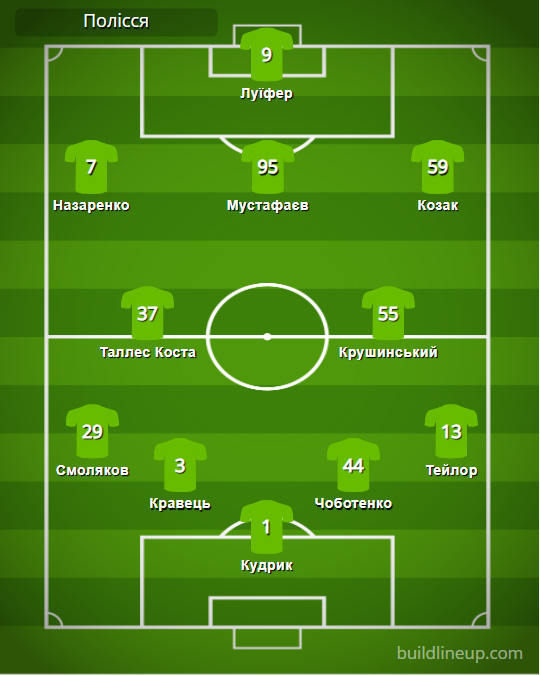 «Полесье»: Кудрик – Смоляков, Кравец, Чоботенко, Тейлор (Михайличенко, 64) – Таллес Коста, Крушинский (Танковский, 53) – Назаренко (Петряк, 64), Мустафаев (Грицук, 60), Козак – Луифер (Будковский, 60).