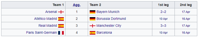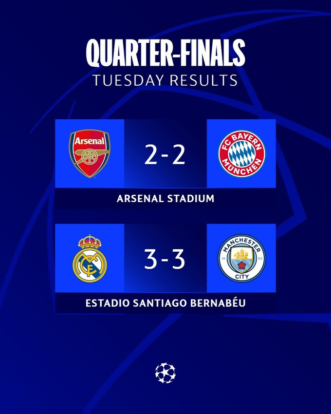 - Арсенал / Бавария – Реал М / Манчестер Сити