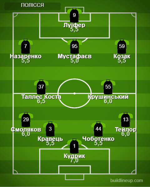 «Полесье»: Кудрик - Тейлор, Чоботенко, Кравец, Смоляков - Крушинский (Танковский, 82), Коста (Кушниренко, 72) - Козак (Петряк, 90+3), Мустафаев, Назаренко (Фортюне, 72) – Луифер (Ндукве, 82)