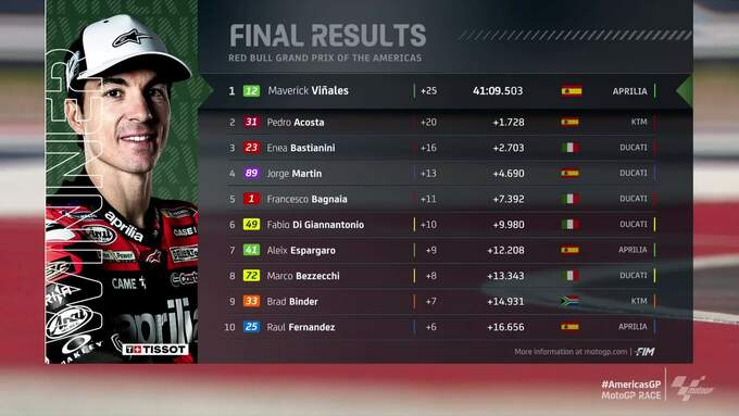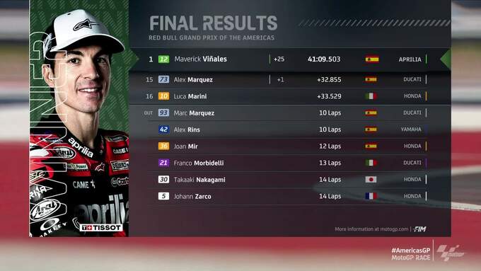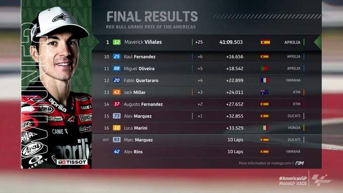 The Aprilia rider takes a historic victory in Austin! 👏#AmericasGP 🇺🇸 pic.twitter.com/qlraAcgH2l