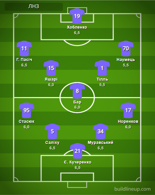 ЛНЗ: Е. Кучеренко – Стасюк, Салиху, Муравский, Норенков – Яшари, Бар (Рыбалка, 86), Тилль (Эйнел, 70) – Г. Пасич, Хобленко (Прядун, 86), Наумец (С. Шестаков, 62).